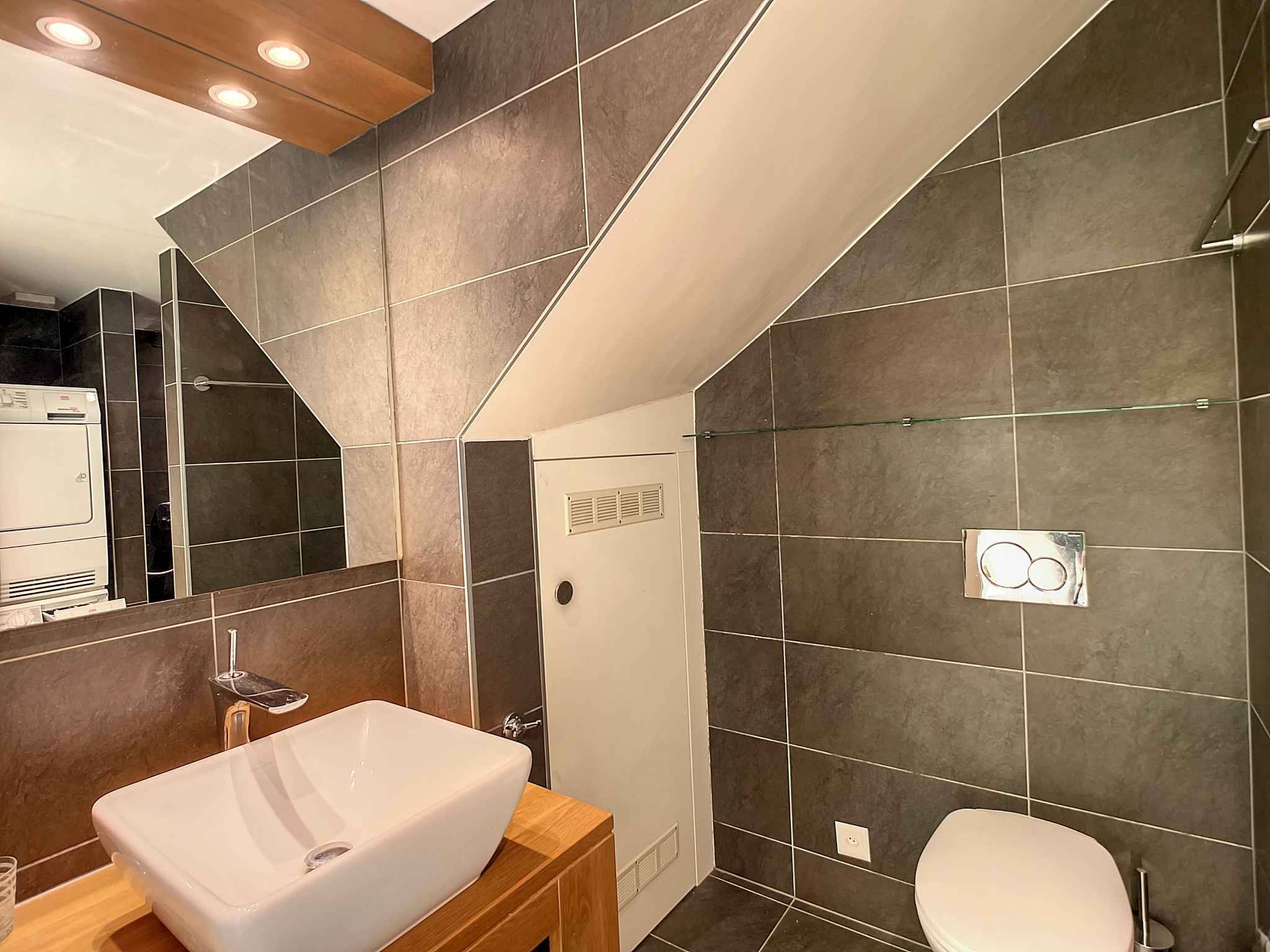 équipée, une chambre à coucher, une salle de douches avec colonne de lavage intégrée, une
