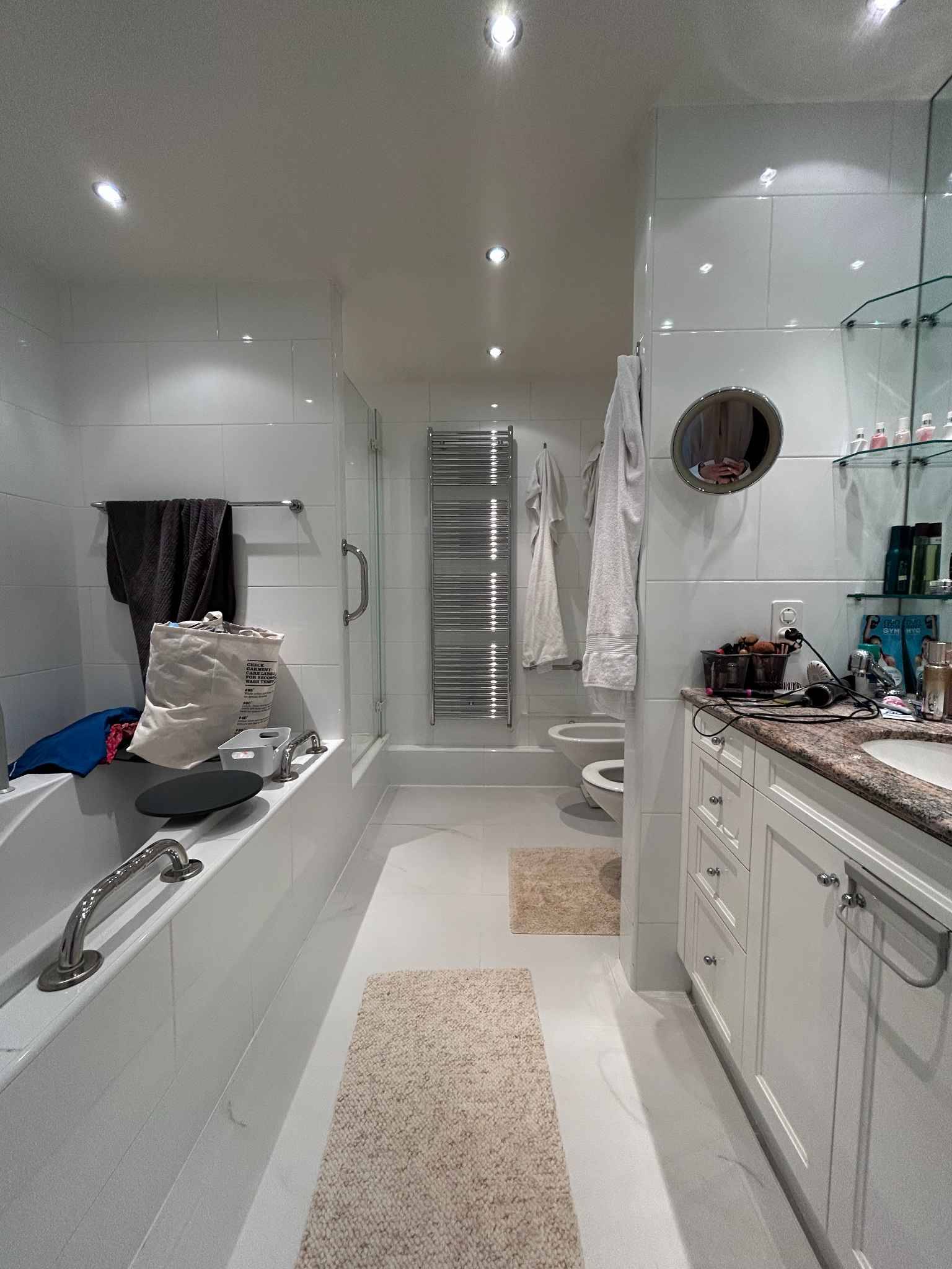 - Salle de bain équipée avec douche, baignoire et toilettes