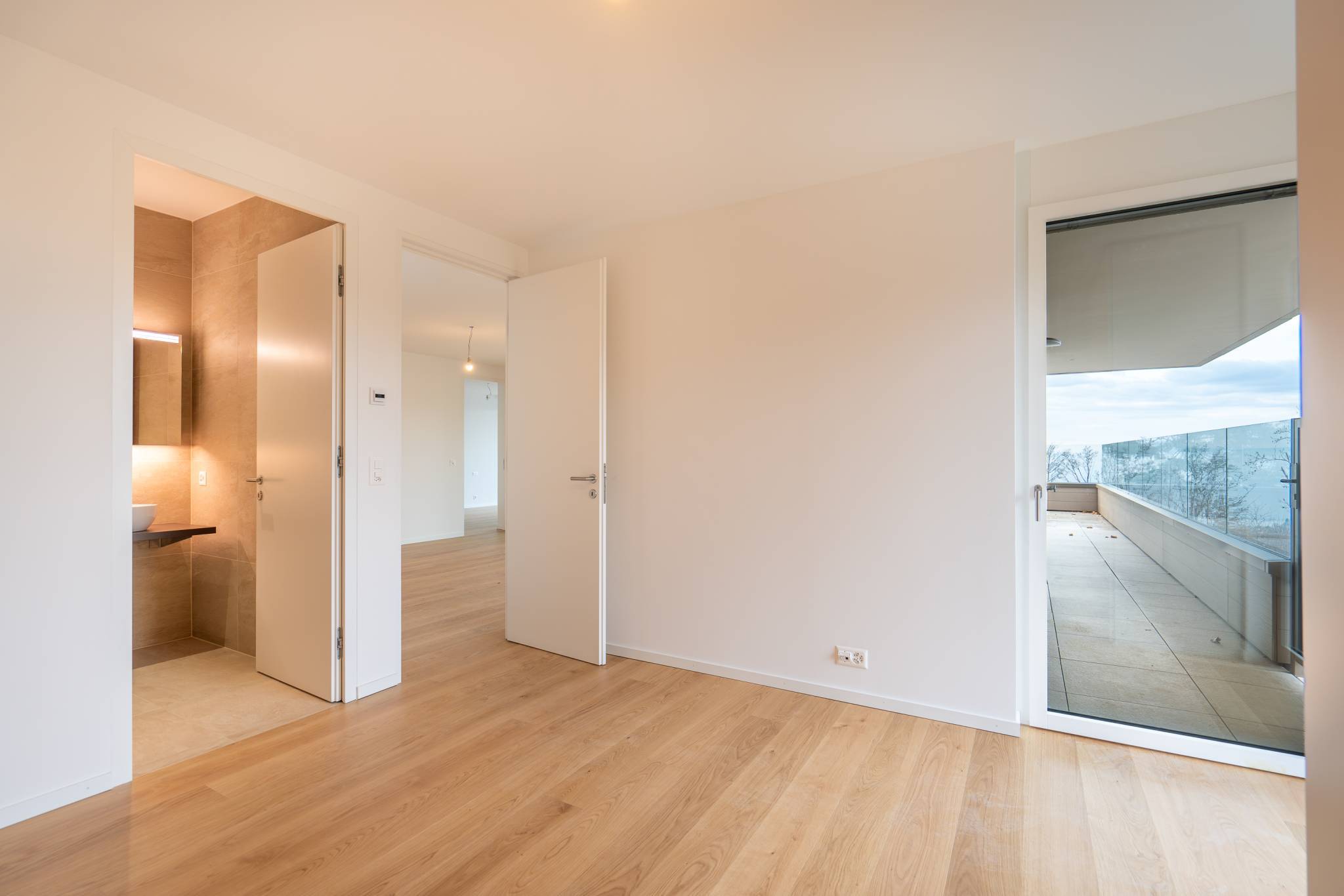 - Une chambre à coucher avec dressing, comprenant une salle-de-douche/WC, donnant accès sur la terrasse