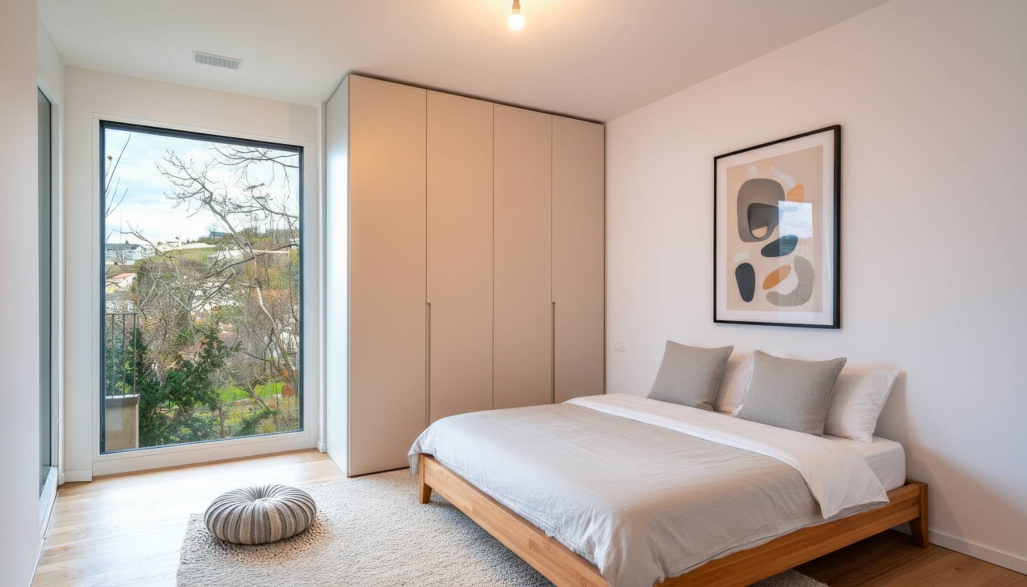 - Une chambre à coucher avec armoire, comprenant une salle-de-bains/WC, donnant accès sur la terrasse