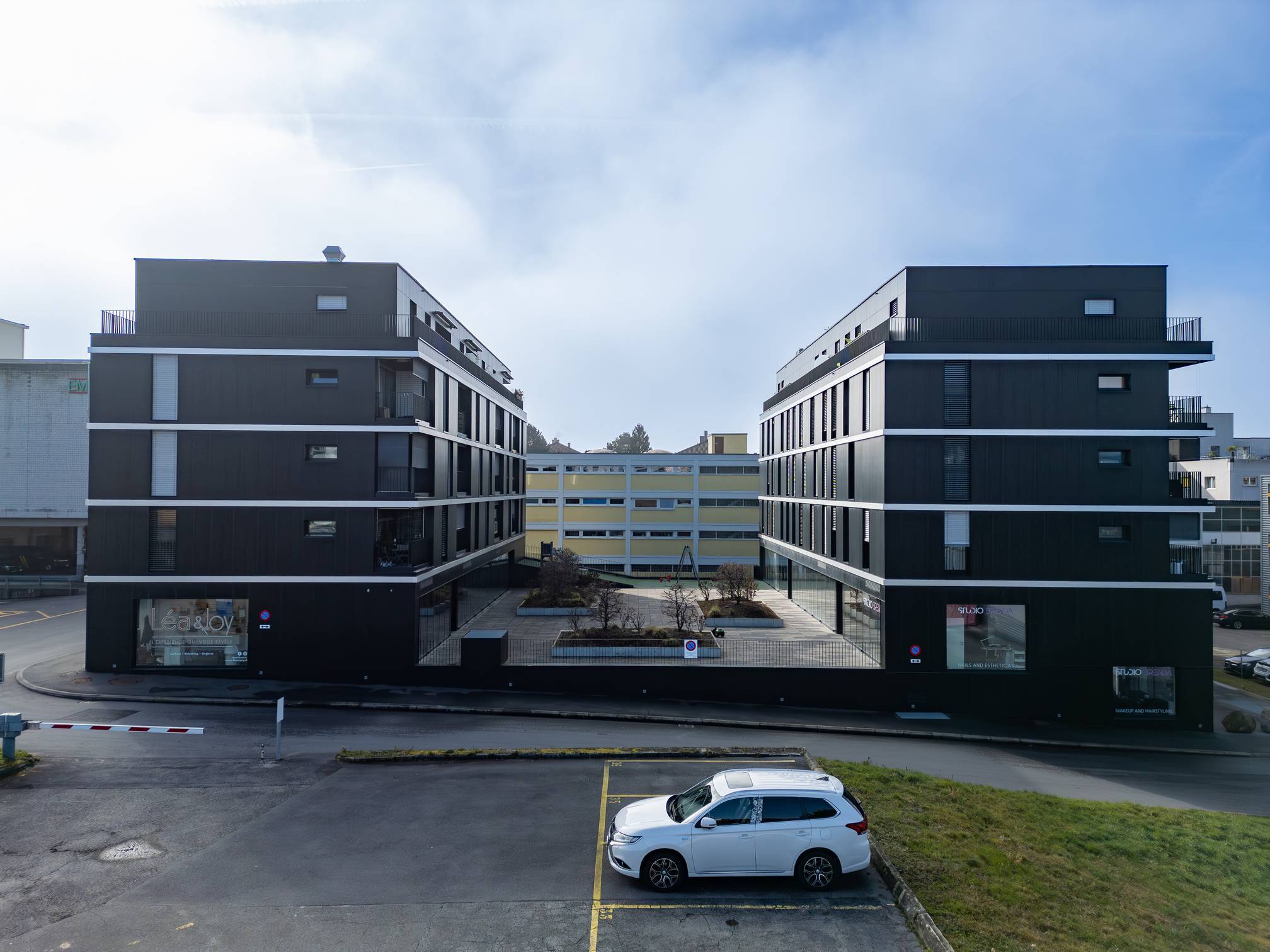 Située dans un quartier en plein développement, cet espace avec pignon sur rue a été construit au standard Minergie.