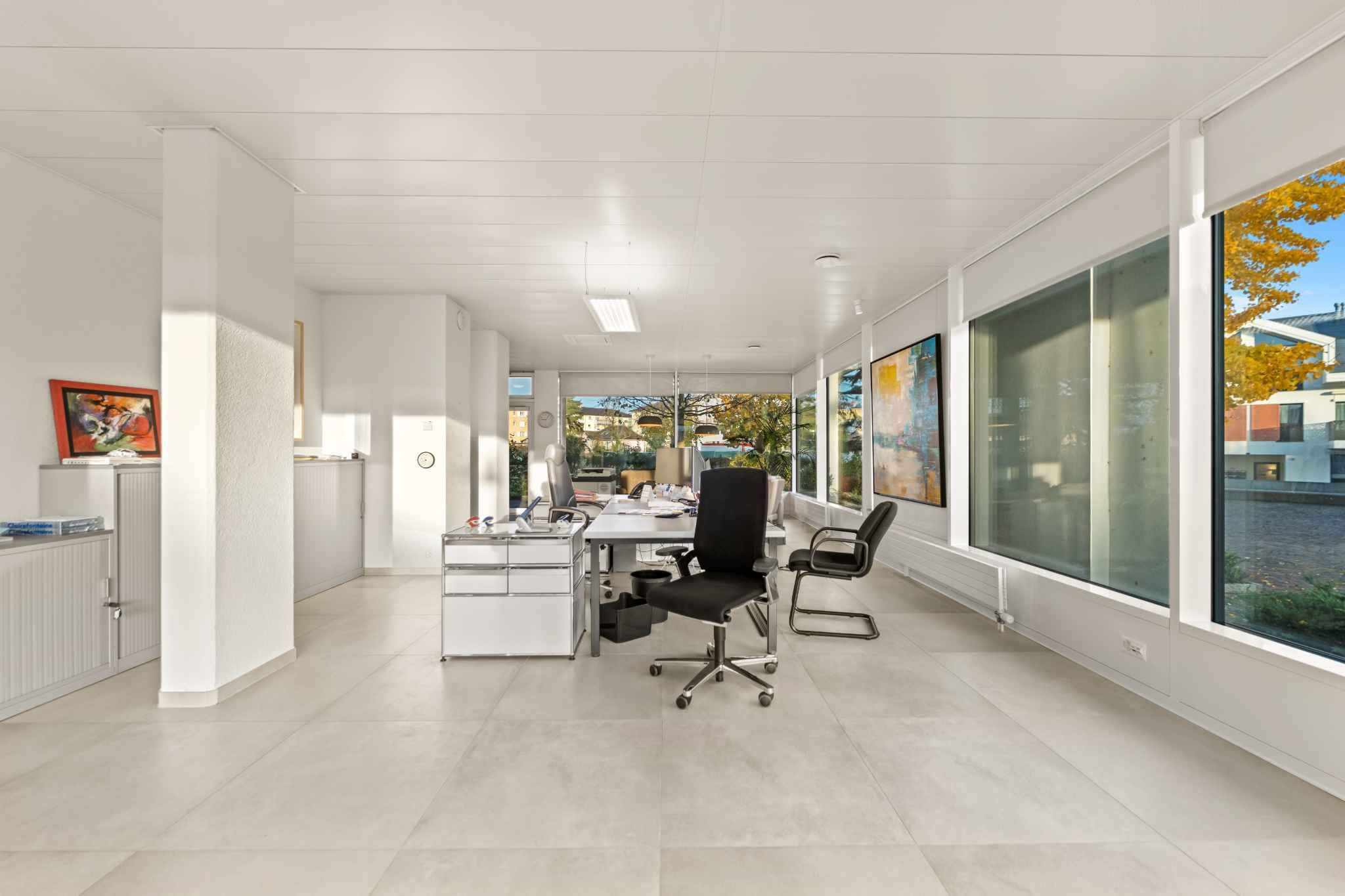 Situés de plain-pied à la rue du Lac 2b à Denges, ces trois lots offrent de généreuses surfaces baignées de lumière naturelle grâce à leurs larges vitrines donnant sur un axe très fréquenté. Leur emplacement stratégique assure une excellente visibilité pour toute activité professionnelle, avec un accès aisé et des places de stationnement extérieures à disposition.