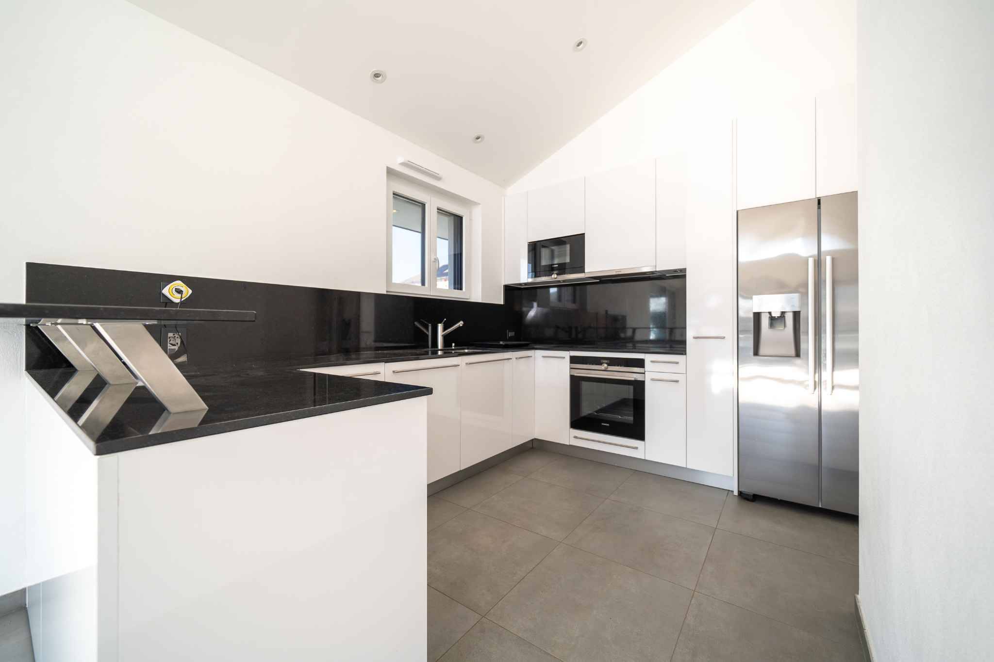 - Cuisine ouverte, entièrement agencée et équipée, s’ouvrant sur un vaste séjour lumineux