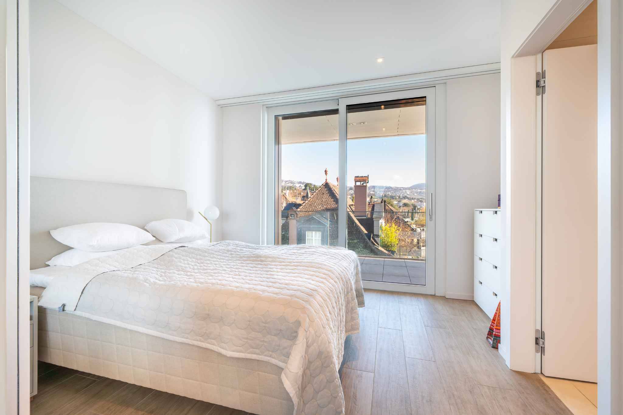 Situé au cœur du prestigieux Domaine de Chamblandes, cet appartement d’env. 140 m² habitables séduit par sa vue spectaculaire sur le lac Léman et les Alpes, son environnement privilégié et ses prestations d’exception.