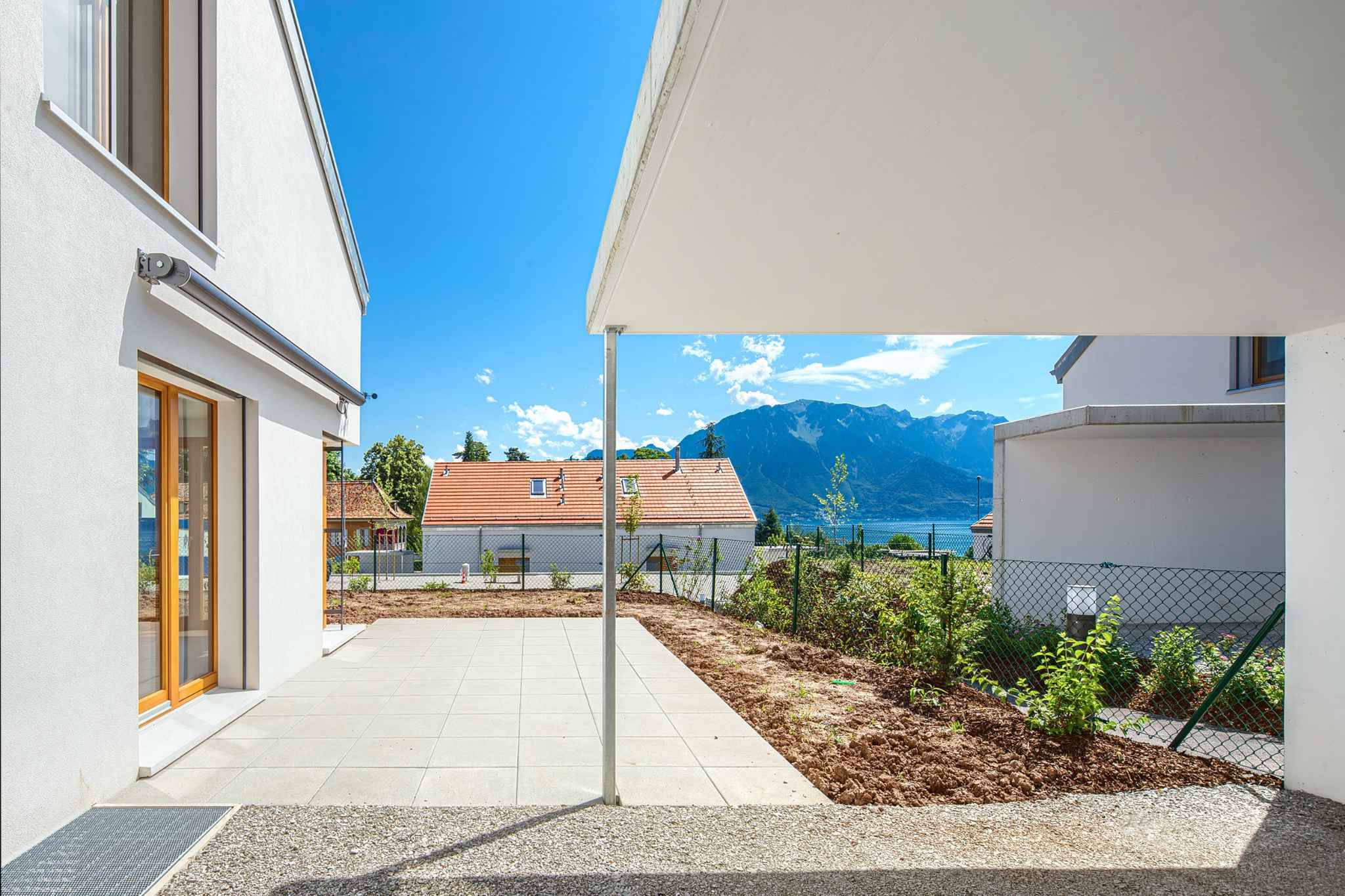 - Rez : Spacieux séjour, cuisine ouverte avec ilot entièrement équipée et agencée, une chambre/bureau, WC visiteurs, une terrasse et jardin privatif de 117 m2.