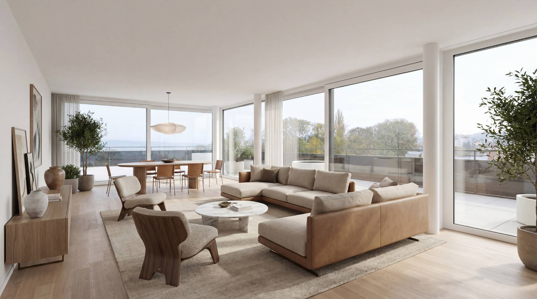 Chaque appartement offre un confort exceptionnel ainsi que des espaces de vie aérés qui bénéficient de généreux prolongement vers l'extérieur que ce soit par un jardin, un balcon ou alors une terrasse.