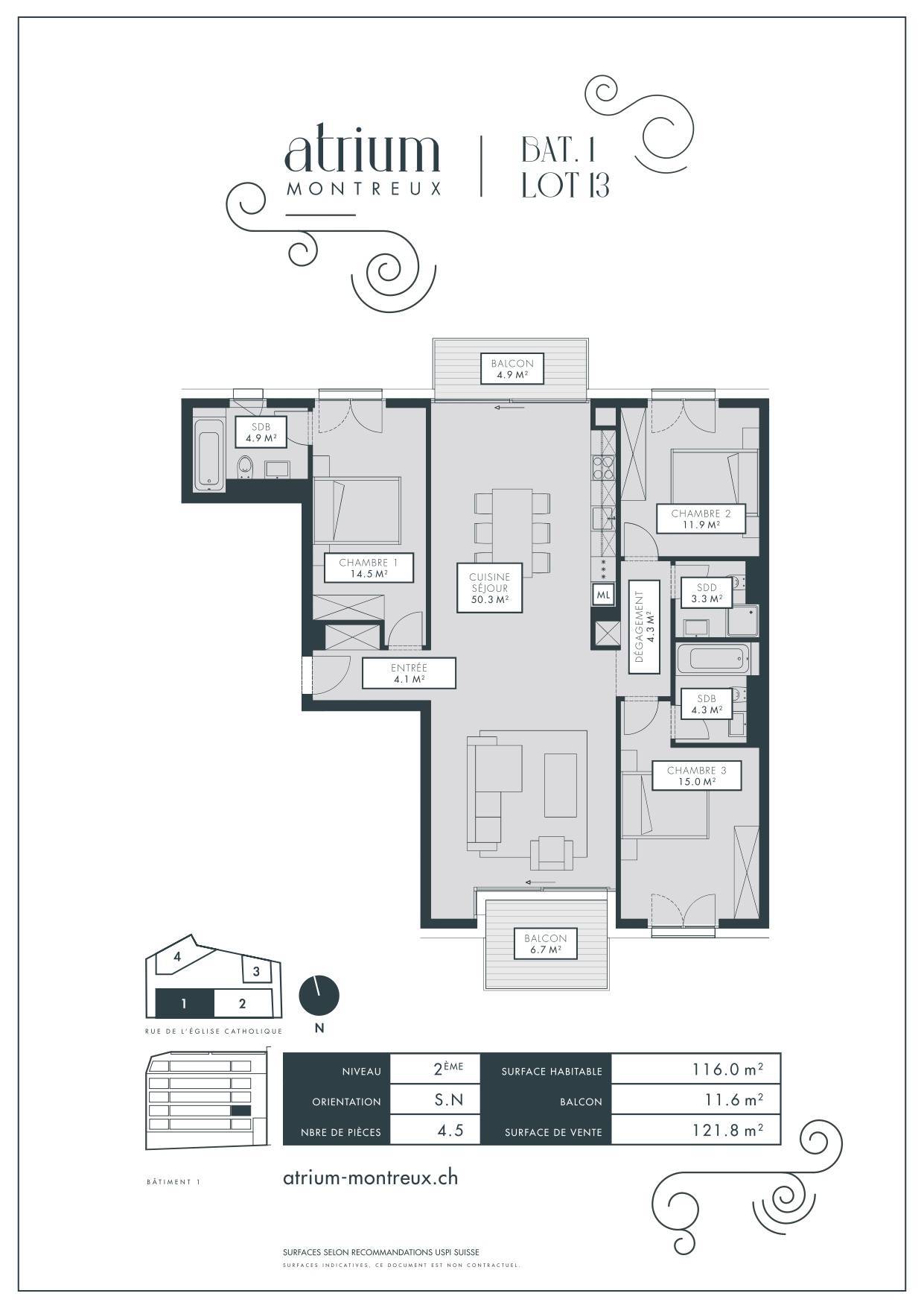 Le lot No 13 ici proposé est un appartement de 4.5 Pièces avec 2 balcons au 2ème étage du bâtiment 1. Il propose une surface habitable de 116 m2.