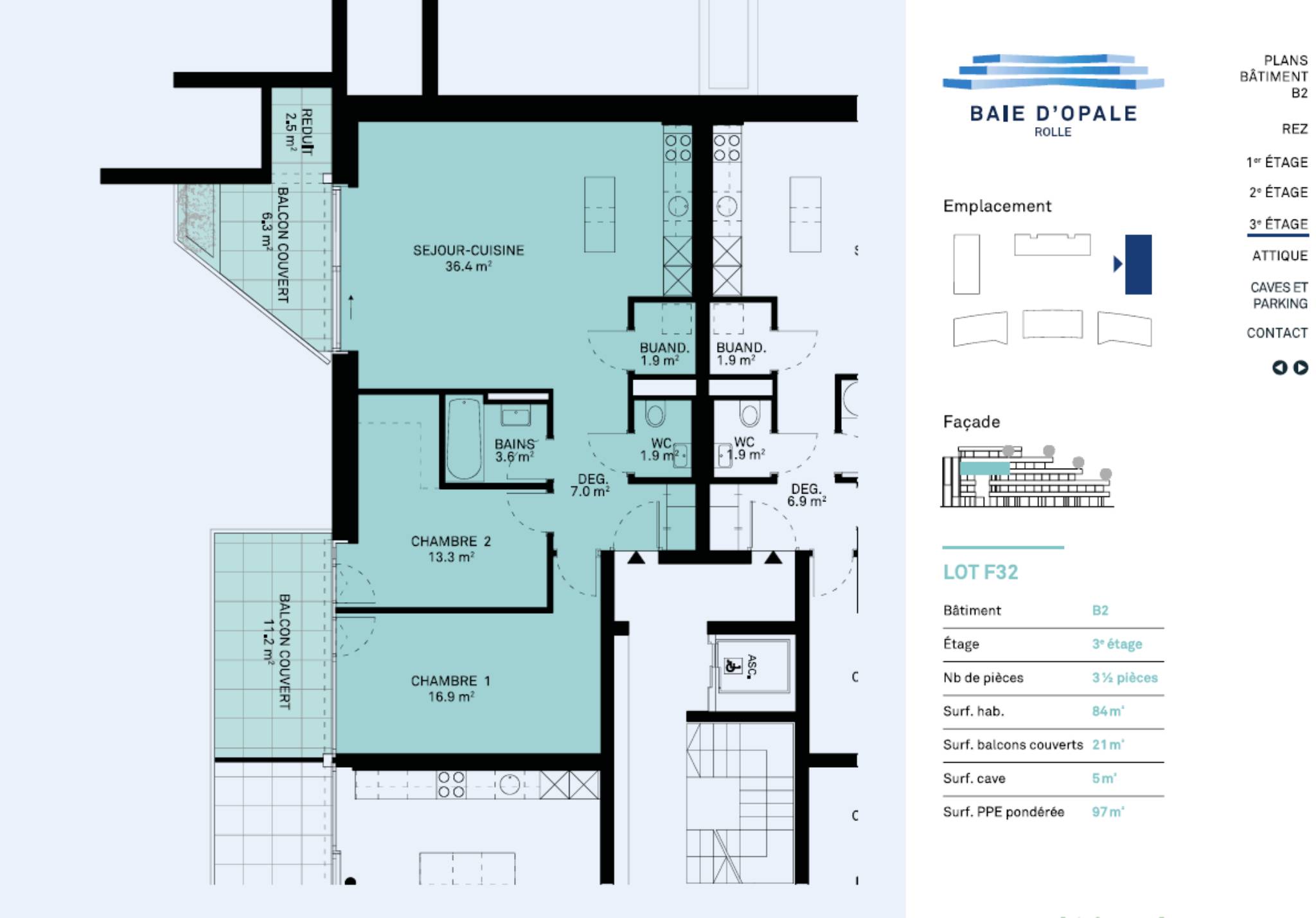 Situé au 3ᵉ étage sur 4 d’un immeuble moderne, cet appartement neuf bénéficie d’une exposition Ouest, offrant une belle luminosité et une vue dégagée. Implanté dans un environnement privilégié, à deux pas de la plage de Rolle, il propose un cadre de vie recherché, calme et agréable.