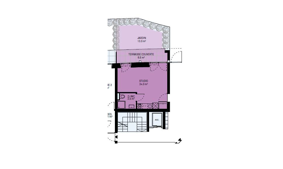 Ce studio se trouve au rez-de-chaussée du bâtiment D2.
