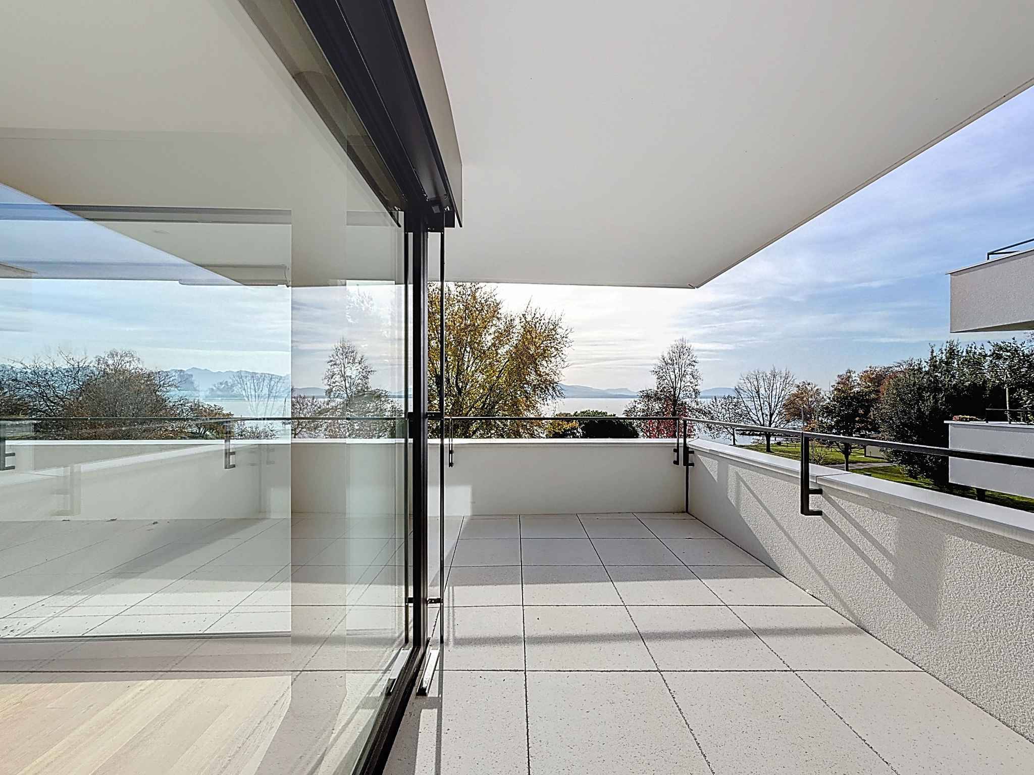 Hall d'entrée avec armoire murale, cuisine ouverte sur le séjour de 46m2 avec accès au balcon de 76m2 bénéficiant d'une sur le lac. Une salle de douches avec WC et raccordement pour la colonne de lavage, trois chambres à coucher dont une parentale avec dressing et salle de bains privative. Les 3 chambres à coucher disposent d'un accès au balcon. Une cave complète ce bien.