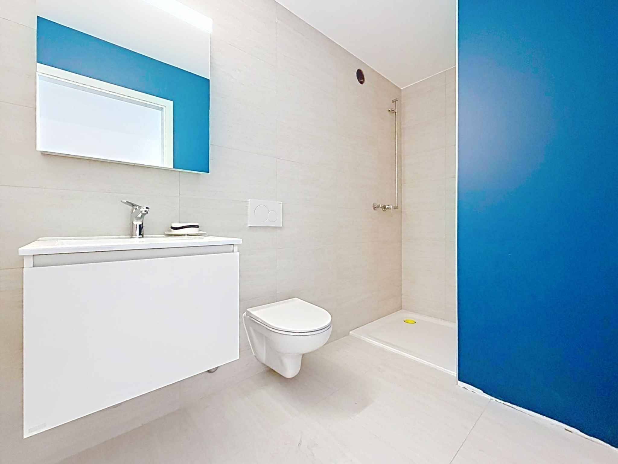 Un hall d'entrée avec armoire murale, un grand séjour / cuisine ouverte de plus de 43m2, une salle de douche, deux chambres à coucher et une chambre parentale avec salle de bains attenante avec arrivées d'eau pour la colonne de lavage. Toutes les pièce de l'appartement ont accès au balcon couvert. Une cave complète ce bien.