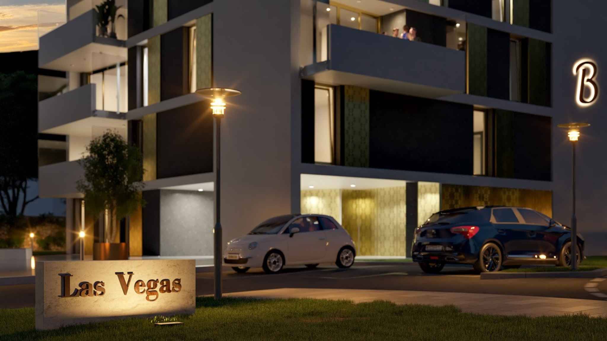 Cette nouvelle promotion "Las Vegas" offre une vue dégagée sur le parc centenaire du Casino . Elle est constituée de deux immeubles (22 appartements au total) allant du studio au 4.5 pièces avec de grands balcons abrités. Un bureau est aussi prévu dans l'immeuble A.