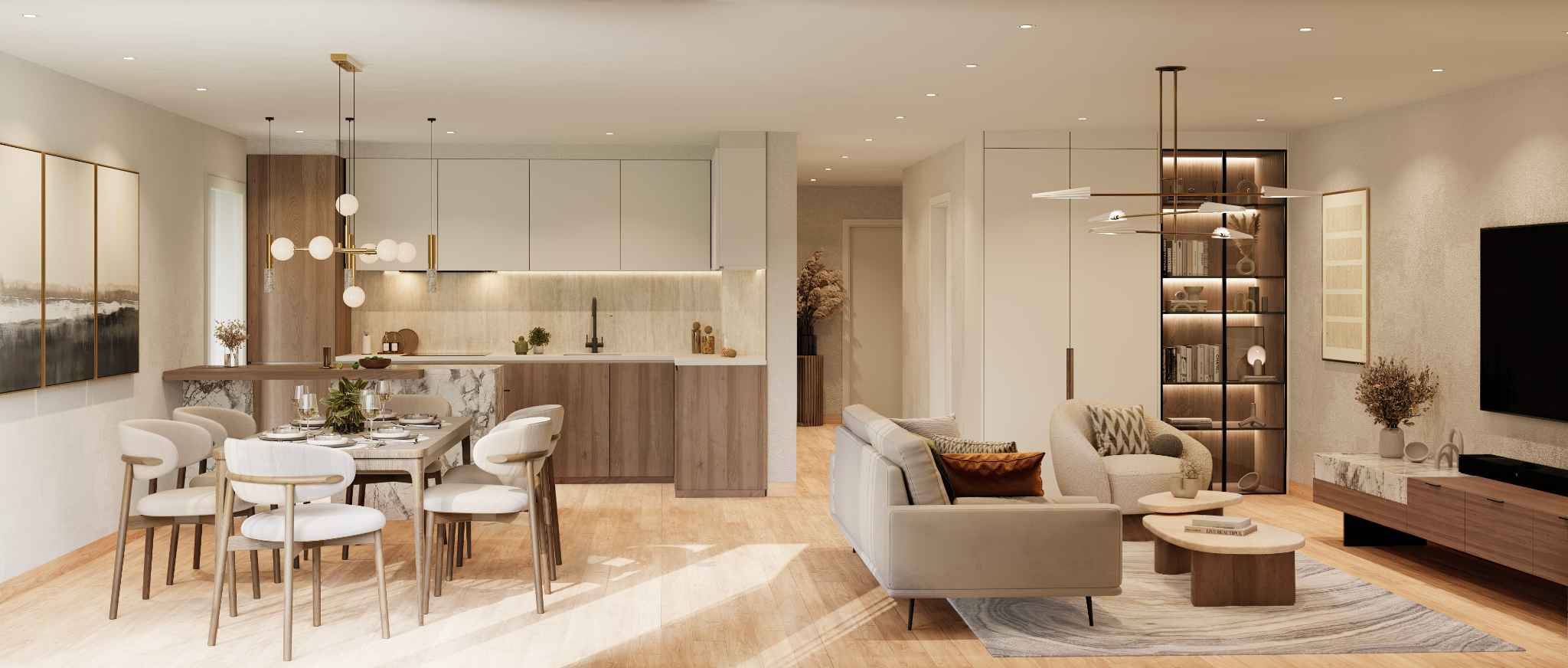 Les lots proposés sont des 3.5 et 4.5 pièces, jouissant chacun d’un généreux extérieur (balcon, terrasse et/ou jardin) et d'une vue panoramique sur les montagnes environnantes.