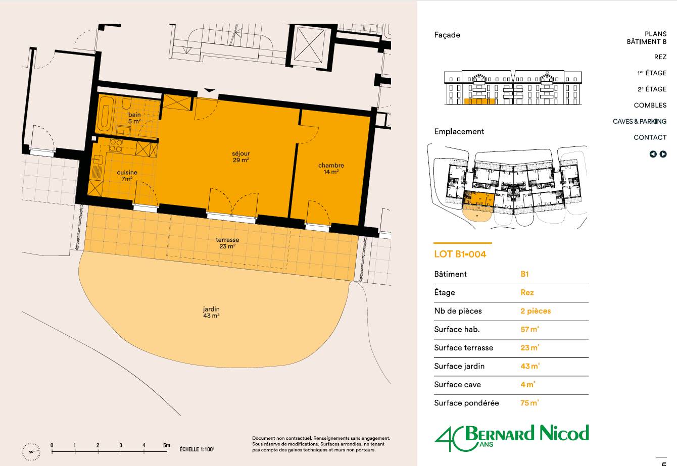 Cet appartement neuf de 2,5 pièces d'environ 57 m² habitables avec terrasse de 23 m² + jardin de 43 m² offre un espace de vie lumineux.