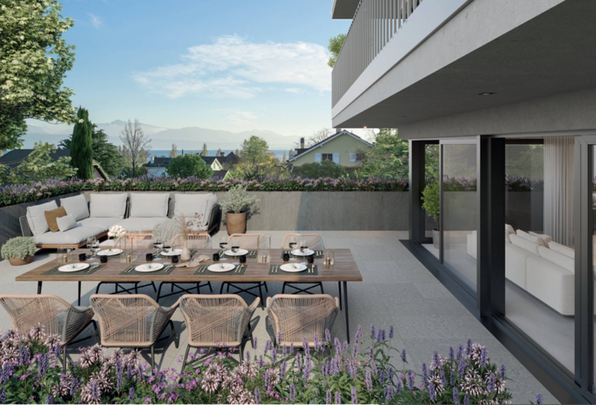 Découvrez Rives d’Or, une nouvelle promotion immobilière de deux villas mitoyennes idéalement située à Préverenges, au cœur d’un environnement paisible et verdoyant, à deux pas de la plage de Préverenges.