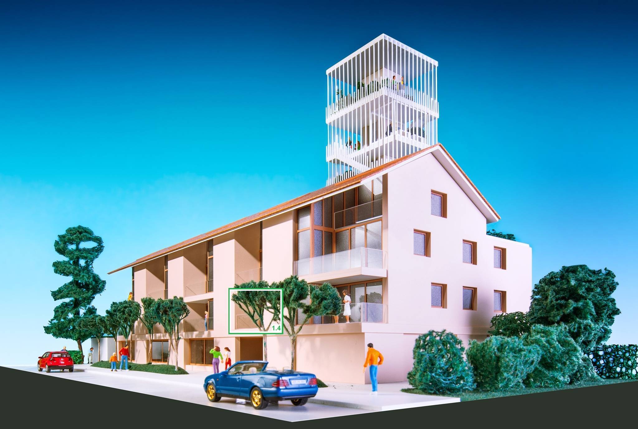 La résidence se composera de 15 appartements modernes de 1.5 à 5.5 pièces, 1 surface commerciale et 2 bureaux.